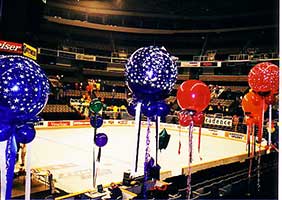 Balloonatics creates custom decorations that complement and communicate your event theme. Balloons are visual globes of color that lend themselves beautifully to a variety of decorative themes. We use balloons and a variety of other materials to create colorful jewels, floating crystals, imaginative centerpieces. Your imagination is the only limit to making your celebration unique and memorable. The photos in these galleries show a variety of the custom bubble decorations, centerpieces and ceiling decorations we have created for events of all kinds.